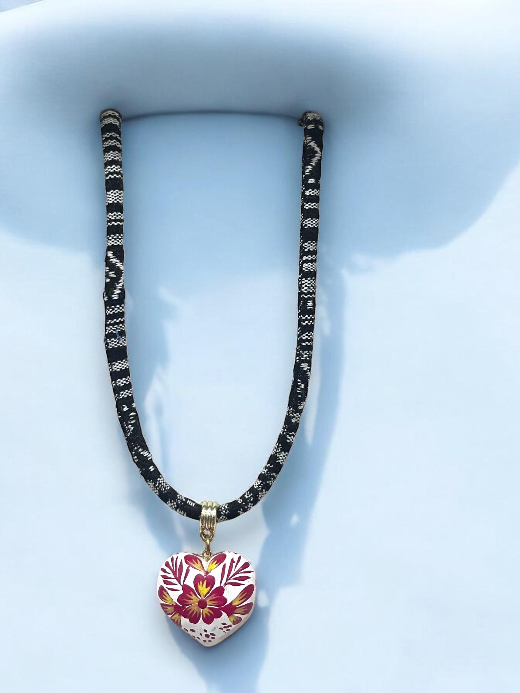 Collar con dije de corazón pintado a mano