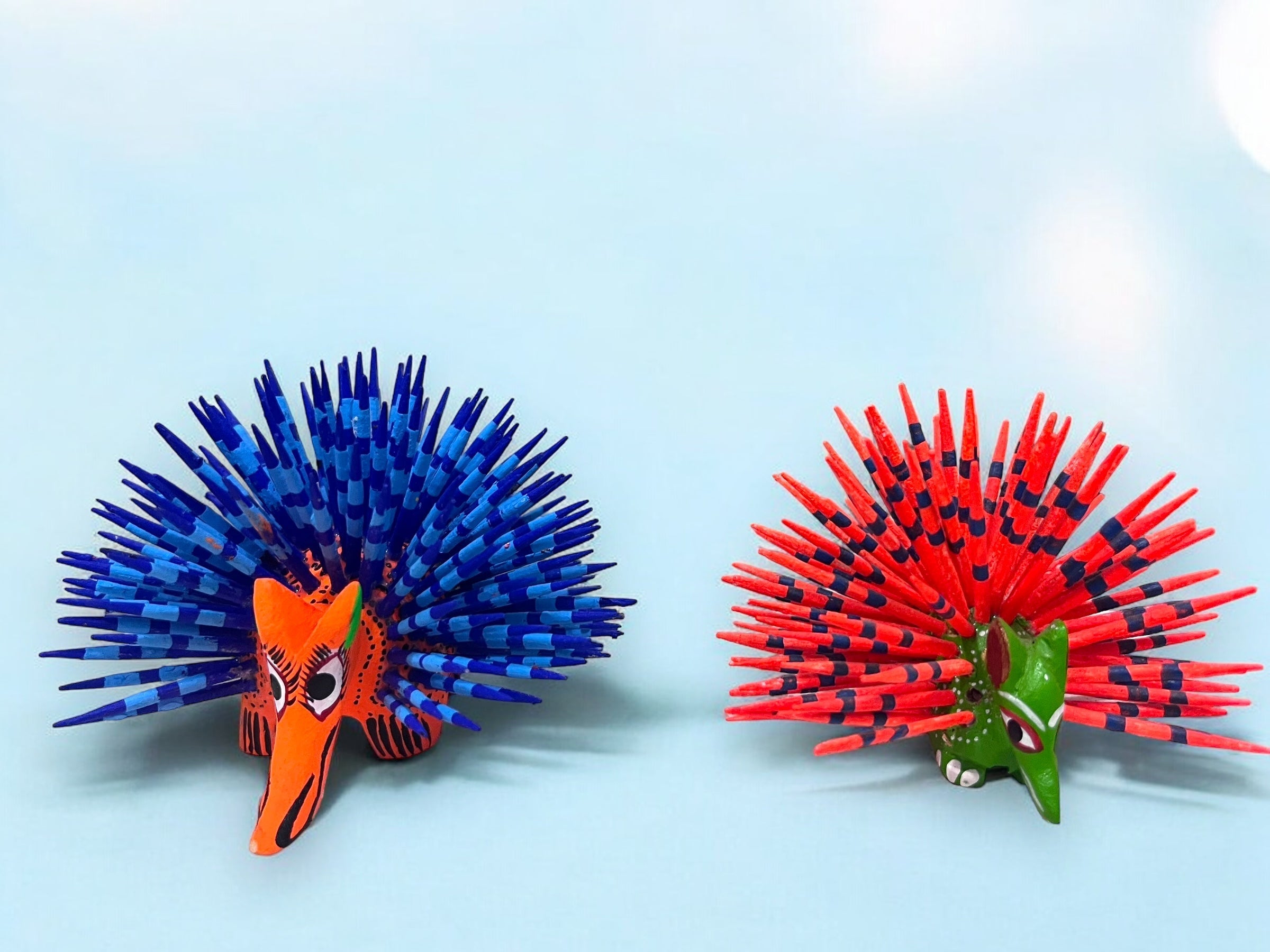 Conjunto de figuras artesanales de puercoespines