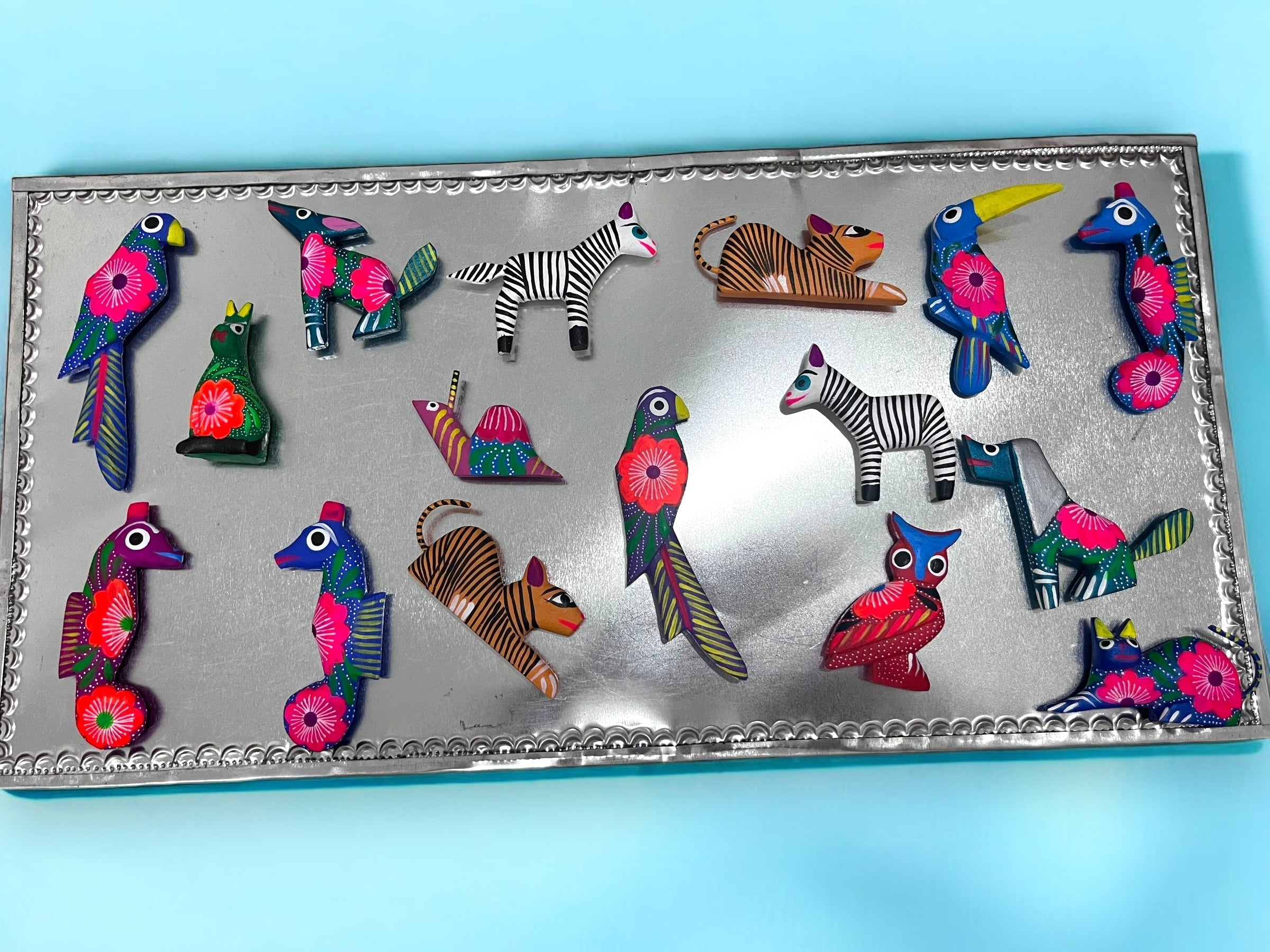 Imanes artesanales de alebrijes: colección de animales coloridos