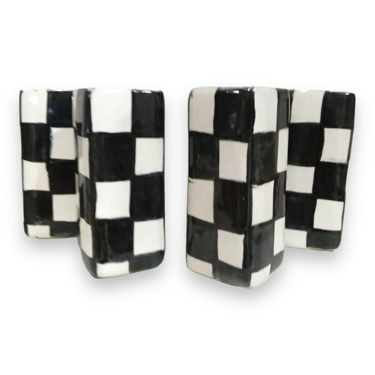 Taza de cerámica con diseño de cuadros blanco y negro
