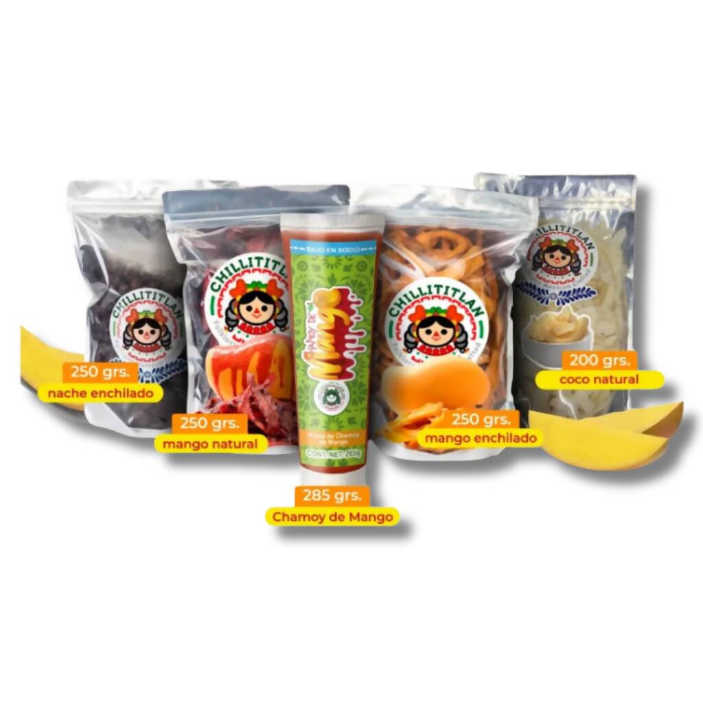 Paquete deshidratados mango, nanchi, coco y chamoy de mango