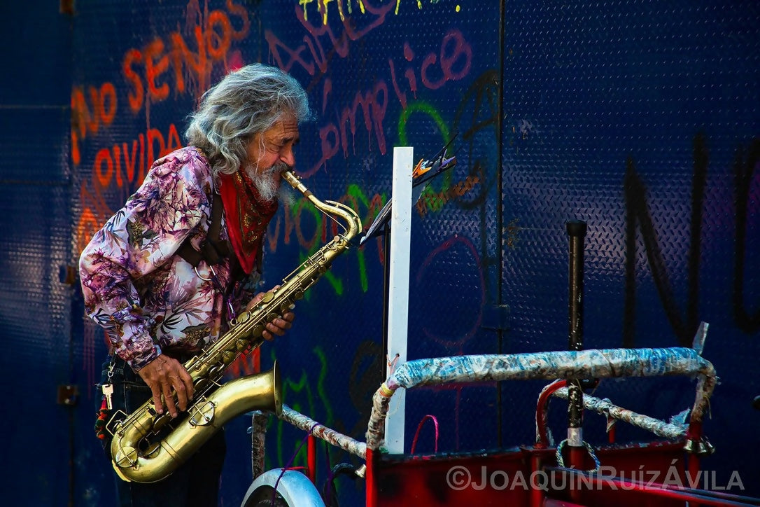 $ 3,500.00$ 3,500.00/Saxofonista en banqueta de Avenida Juárez, Centro Histórico, Ciudad de México, tocando La Balada de John y Yoko. Info: mail.joaquinruiz@gmail.com