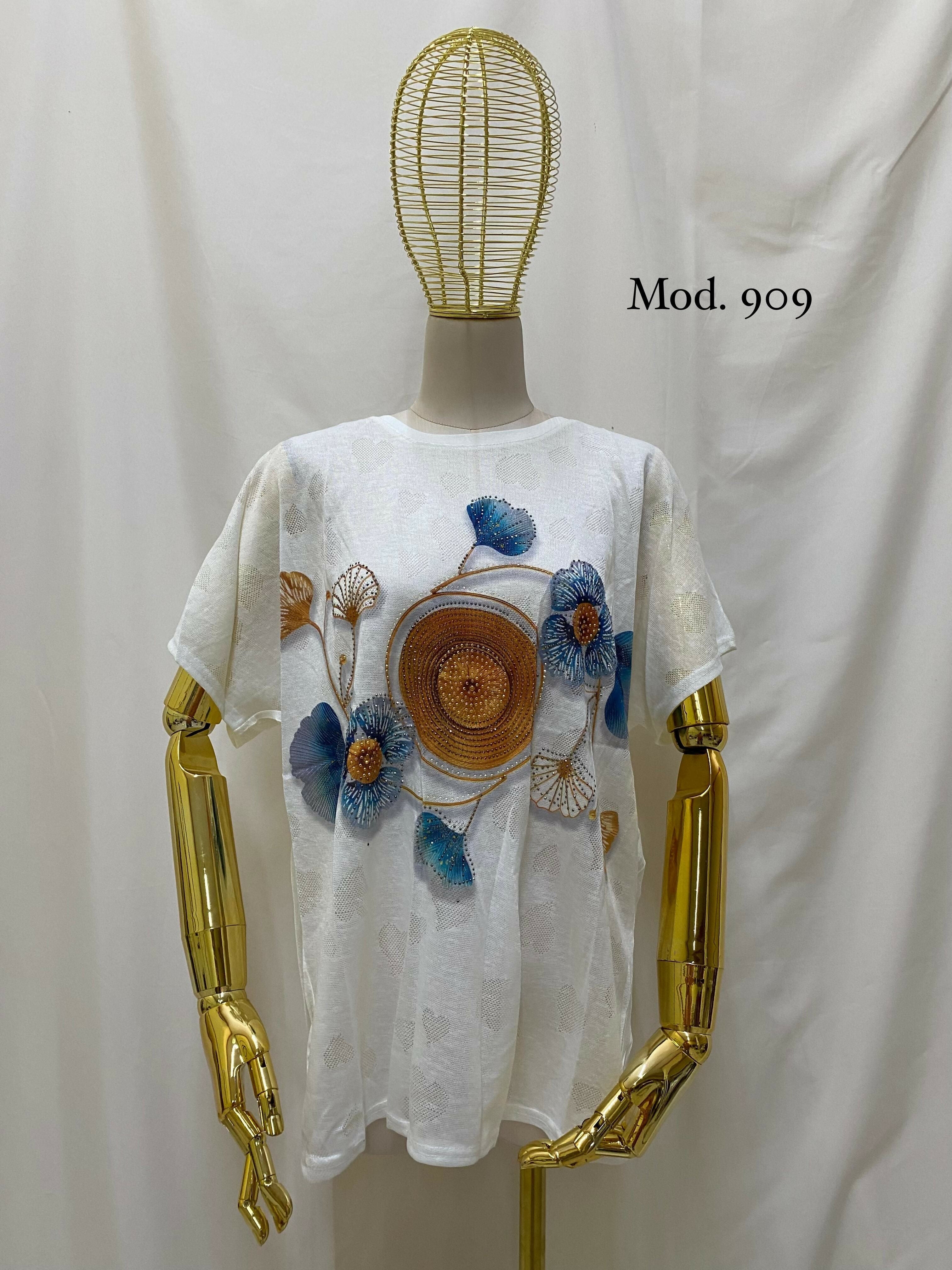 $ 399.00$ 399.00/Playera ligera con diseño de flores y detalles con pedrería