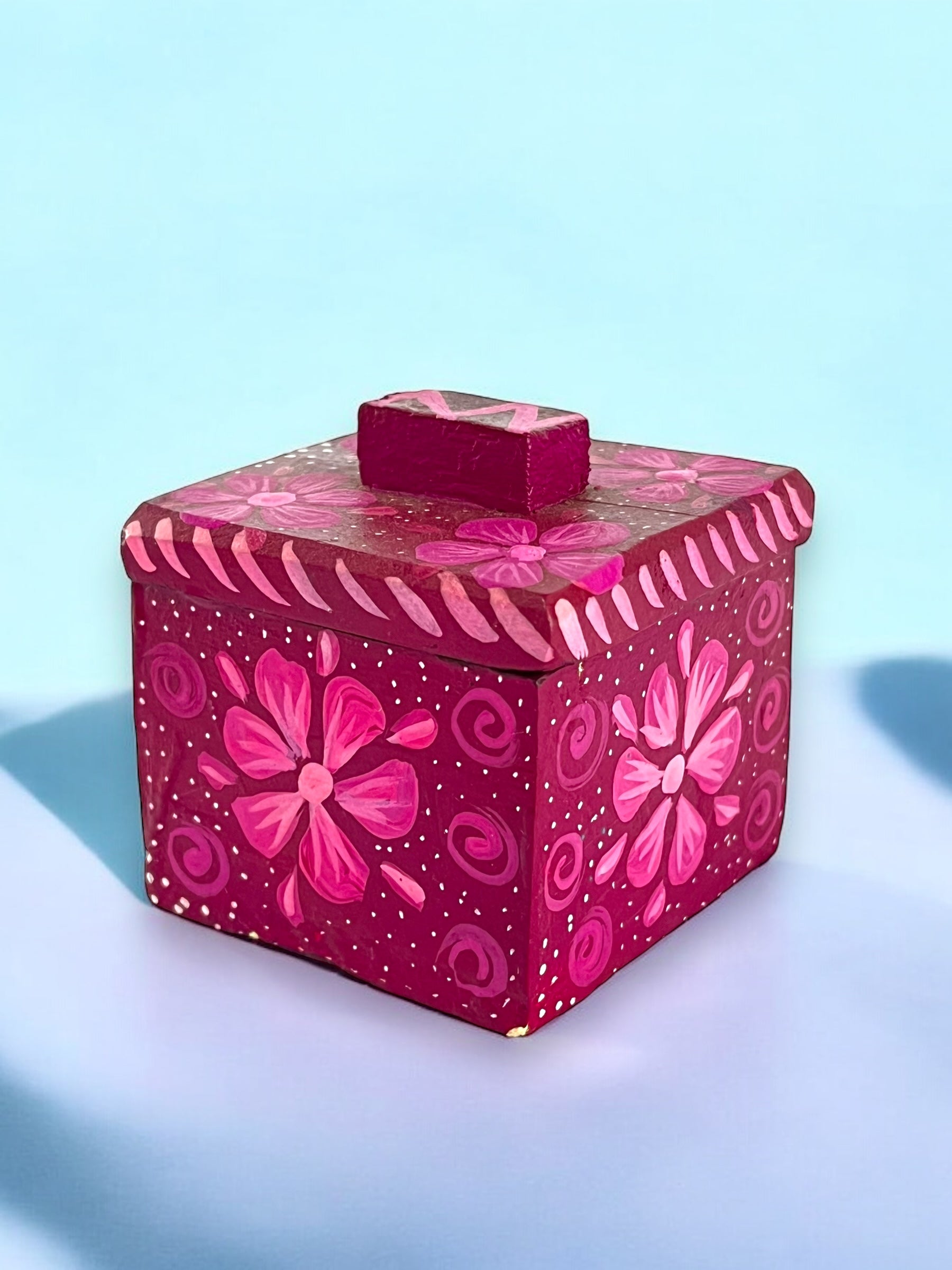 Caja Cuadrada Pintada a Mano en Tonos Rosados