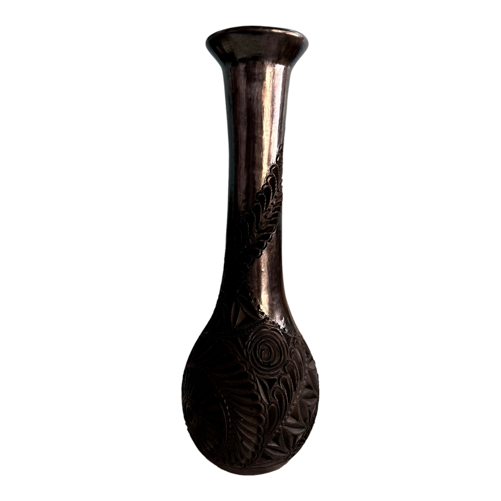 Hecho por Orden Hermosa Maceta de Barro Negro, Maceta Decorativa Florero hecho a mano en Oaxaca